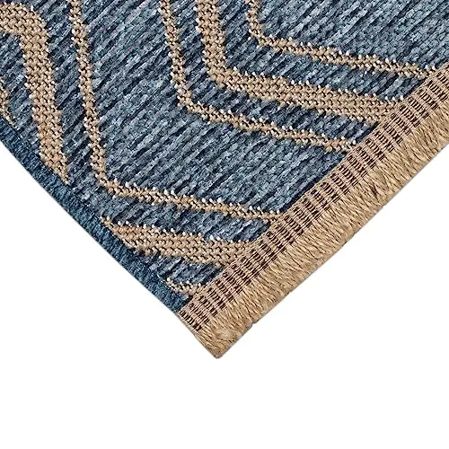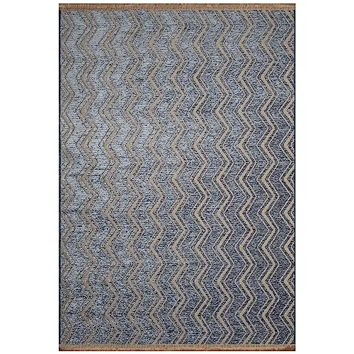 Bring a touch of modern rustic charm to your home with this chenille and jute flatweave rug. The distressed multi-shaded blue background pairs beautifully with a natural jute zigzag stripe design, creating a stylish look that works in both casual and contemporary spaces. Its low-profile flatweave makes it easy to place under furniture, while the latex non-skid backing helps keep it in place.