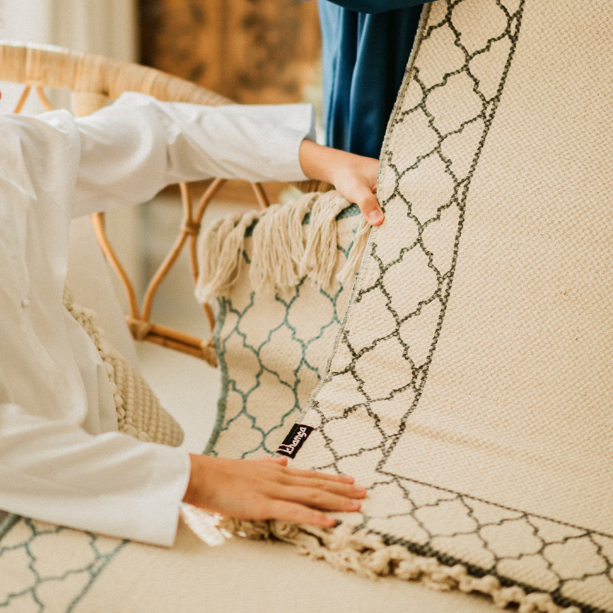 This children’s organic cotton prayer mat is thoughtfully handmade, designed to be soft, safe, and comfortable for little ones. With natural materials and no chemicals, it offers peace of mind for parents while encouraging children to develop a love for prayer from an early age. A beautiful blend of tradition and care, it also makes a meaningful gift for Ramadan or Eid.