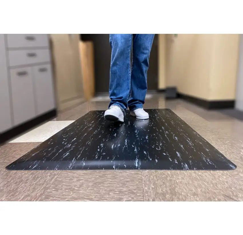 UltraSoft Tile-Top Anti-Fatigue Floor Mats are the ultimate solution for anyone who spends long hours standing. They deliver maximum anti-fatigue performance and ergonomic support, reducing strain on legs, feet, and back. The marbleized, non-porous surface not only looks professional but is also easy to clean and naturally anti-microbial, meeting the ASTM G21 standard with no special additives required. This keeps bacteria and organic growth at bay, making the mats ideal for hygienic environments such as labs, pharmacies, medical facilities, and standing desks.